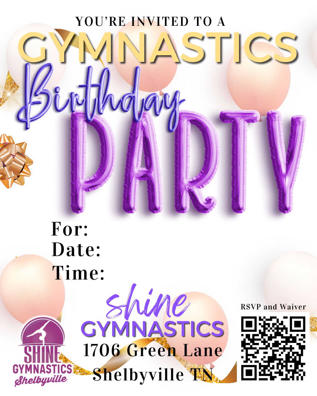 Let the coaches at Shine Gymnastics provide your child and guests the happiest birthday party ever! We do all of the work for you, so parents and guests can focus on the moment and the memories.